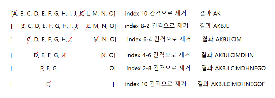 따라서 결과는 AKBJLCIMDHNEGOF여야 한다.