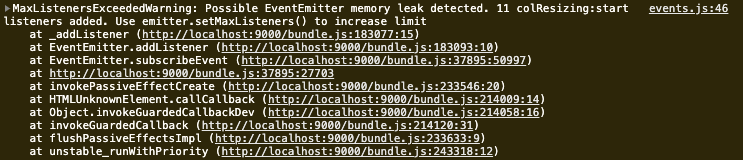 require('events').EventEmitter.prototype._maxListeners = {컬럼 수};